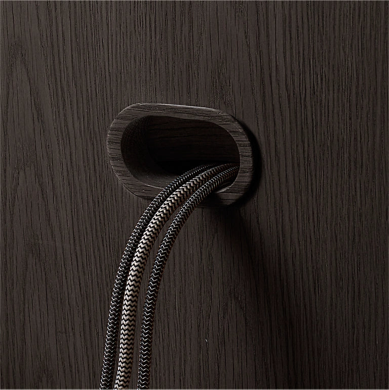 - 2 cord cutouts in back panel for wire management (1 per section); cord cutouts have wood grommets in a complementary finish