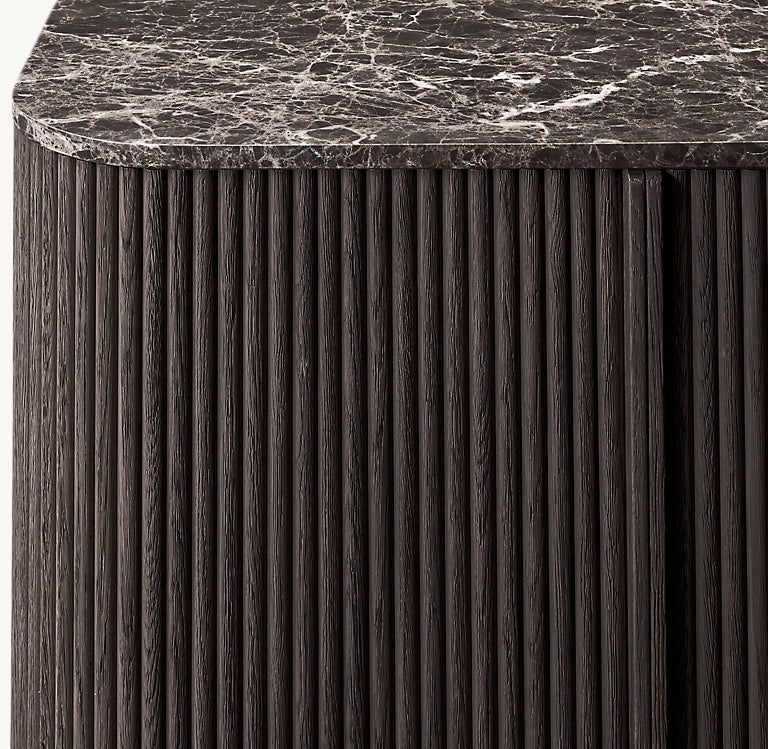 - Top crafted of ¾"-thick Spanish or Turkish marble over an aluminum honeycomb core
